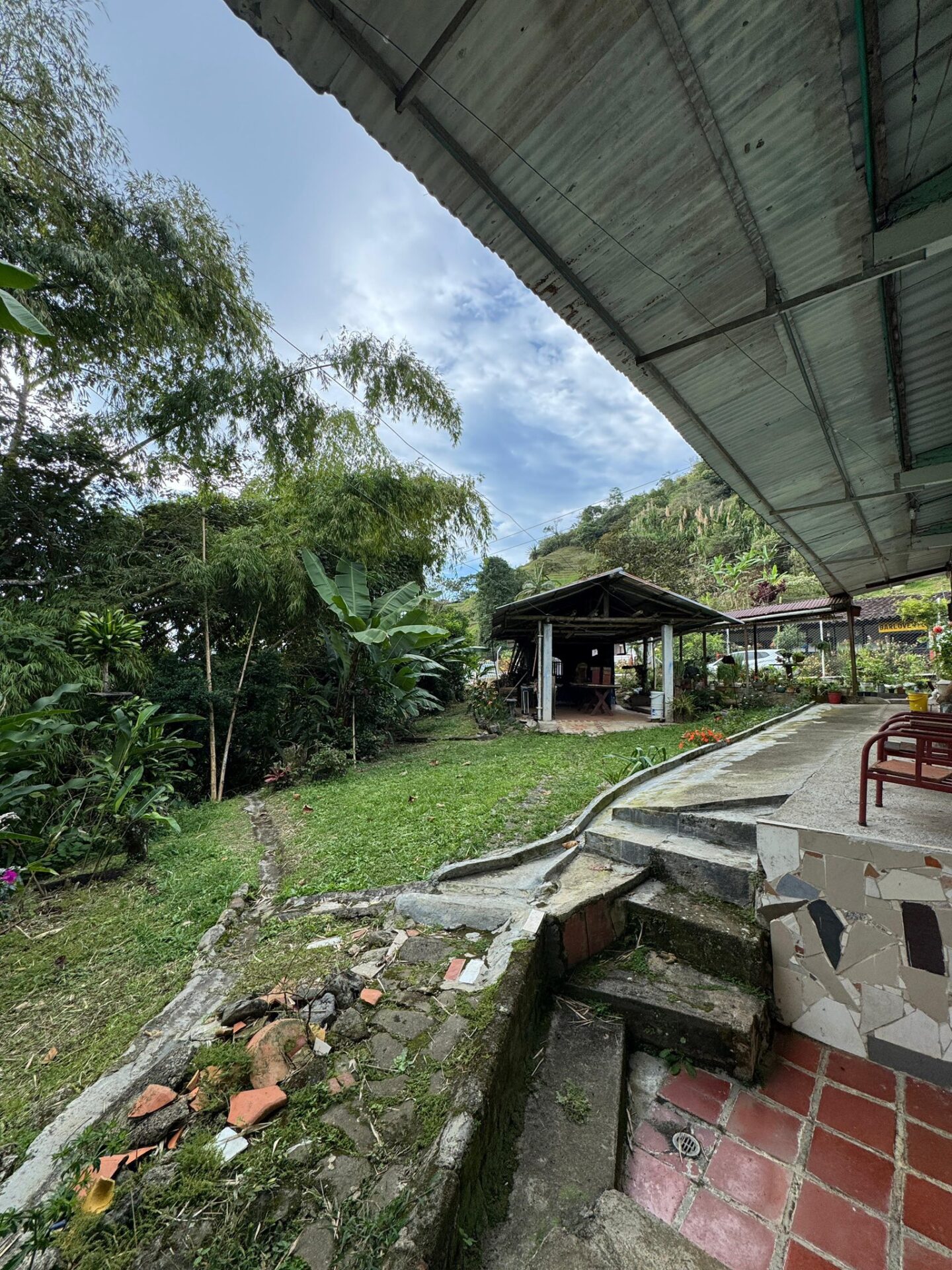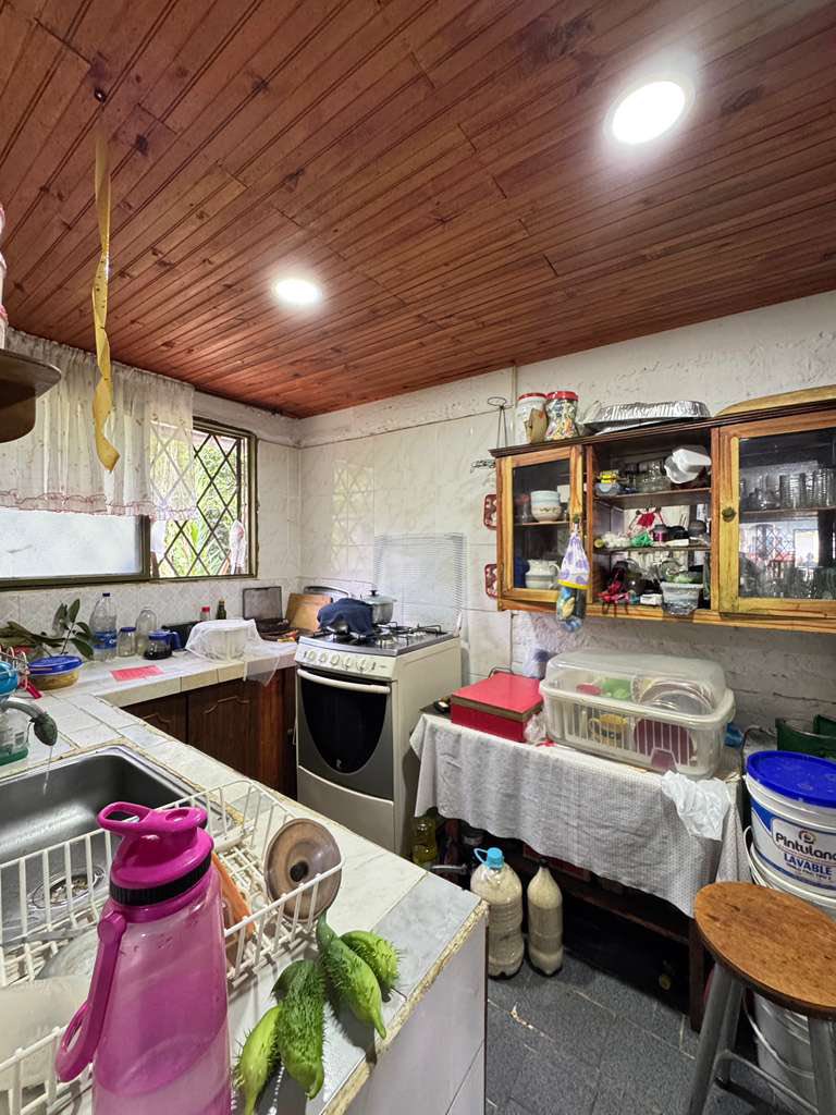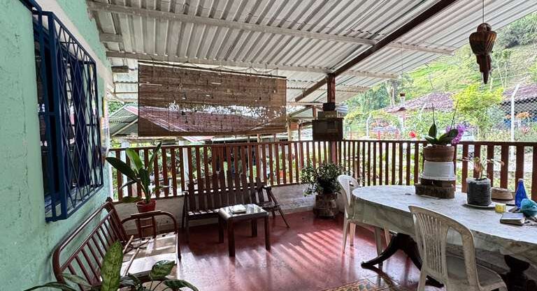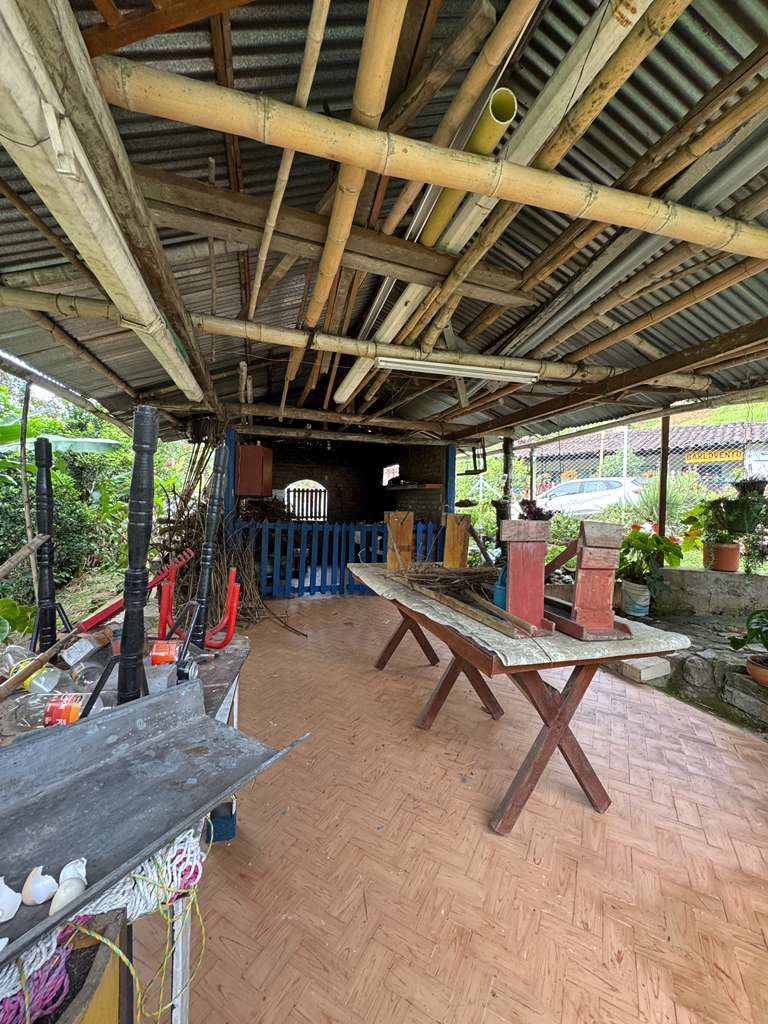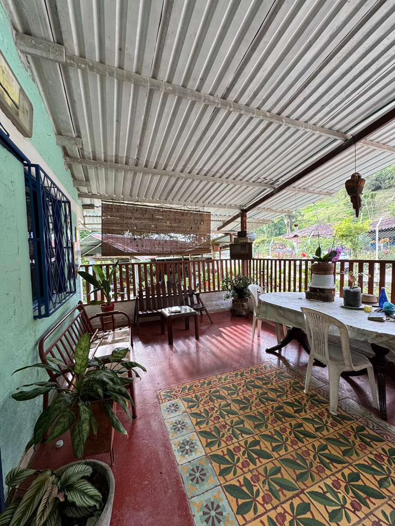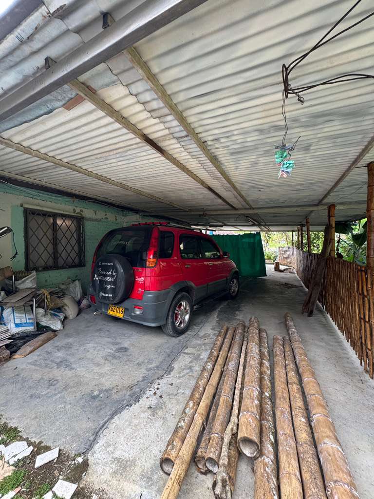 Con acceso al rio Portón metálico Amplio parqueadero 4 vehículosEnmalladaSala,Comedor,Cocina4 Habitaciones3 Baños Kiosko, fogón de leña Corredores Pisos cerámica Agua, Energía Zona lavado